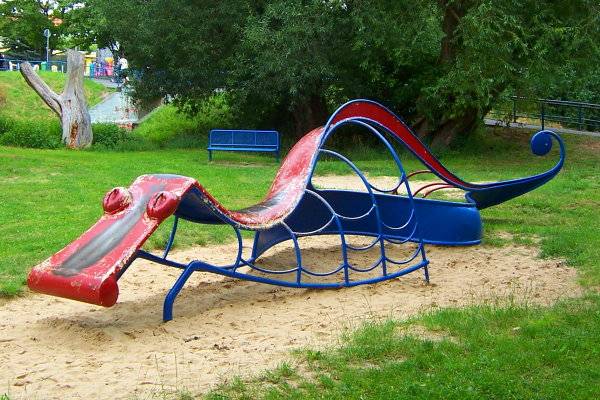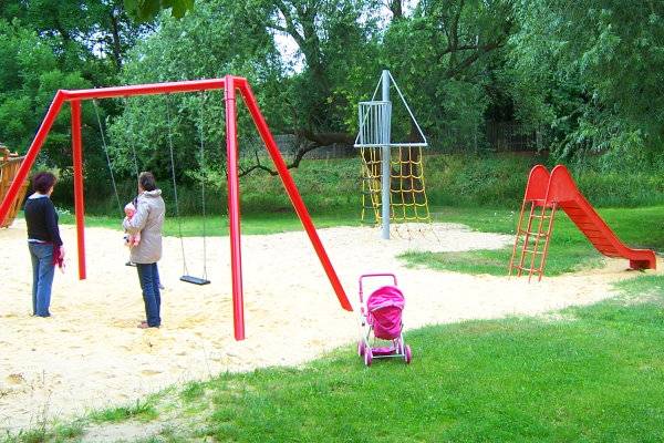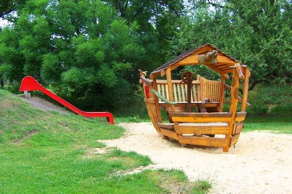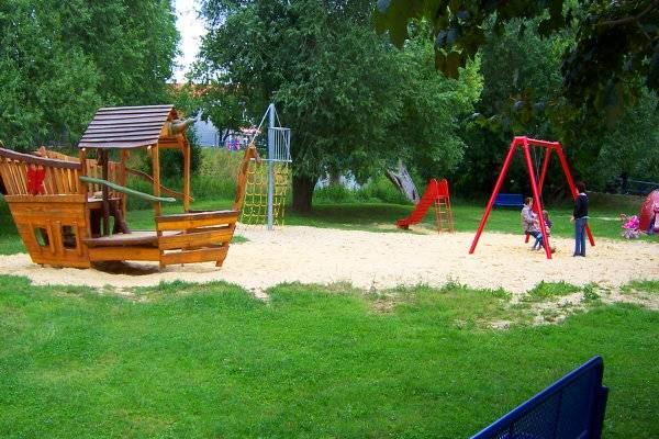 Hinter dem Sommerbad erwartet euch ein aufregender Spielplatz. Hier können sich die Kinder an verschiedenen Spielgeräten austoben, wie z.B.: ein großes Holzschiff "Arche Noah", Rutschen, Schaukeln, ein Klettergerüst und ein Drachen zum Rutschen und zum Klettern.