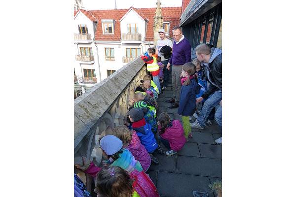 Die Kinder durften Fragen stellen, das Büro anschauen und als Höhepunkt den Balkon besichtigen, mit Blick auf den Holzmarkt. Für die Kinder war das sicherlich ein tolles Ereignis.