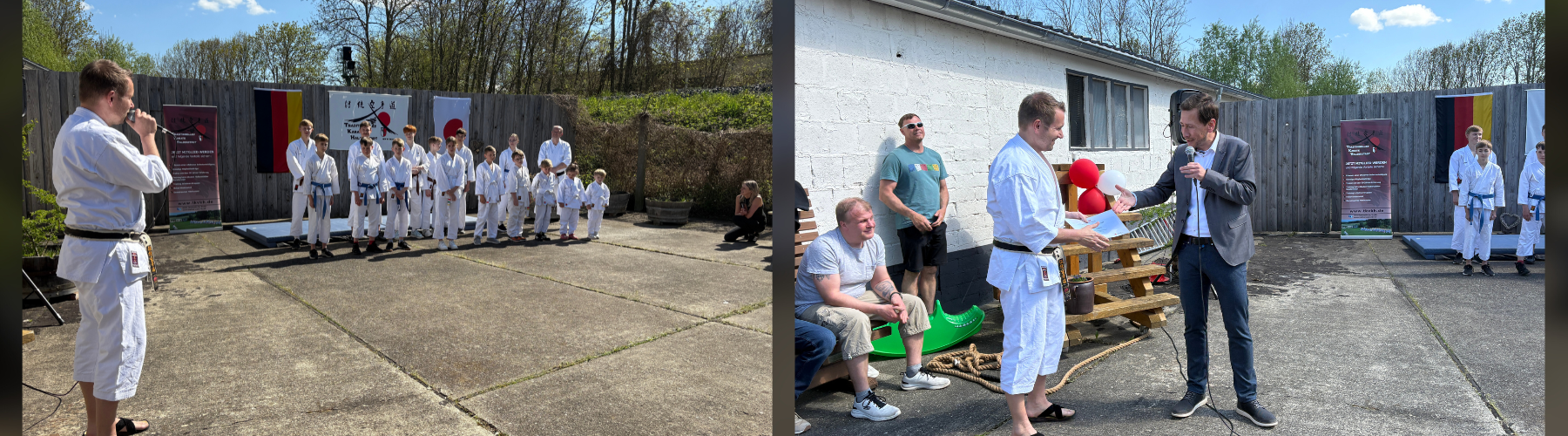 Auch Halberstadts Oberbürgermeister Daniel Szarata ließ es sich nicht nehmen, persönlich zu gratulieren und in seiner Rede die bedeutende Rolle des Vereins für die Kinder- und Jugendarbeit in der Stadt hervorzuheben. „Karate schult nicht nur den Körper, sondern vor allem den Geist – und genau diese Werte brauchen wir heute mehr denn je“, sagte Szarata. Er lobte die 30-jährige Kontinuität und das Engagement des Vereins und überreichte symbolisch einen Scheck in Höhe von 130 Euro als Zeichen der Anerkennung und Unterstützung.