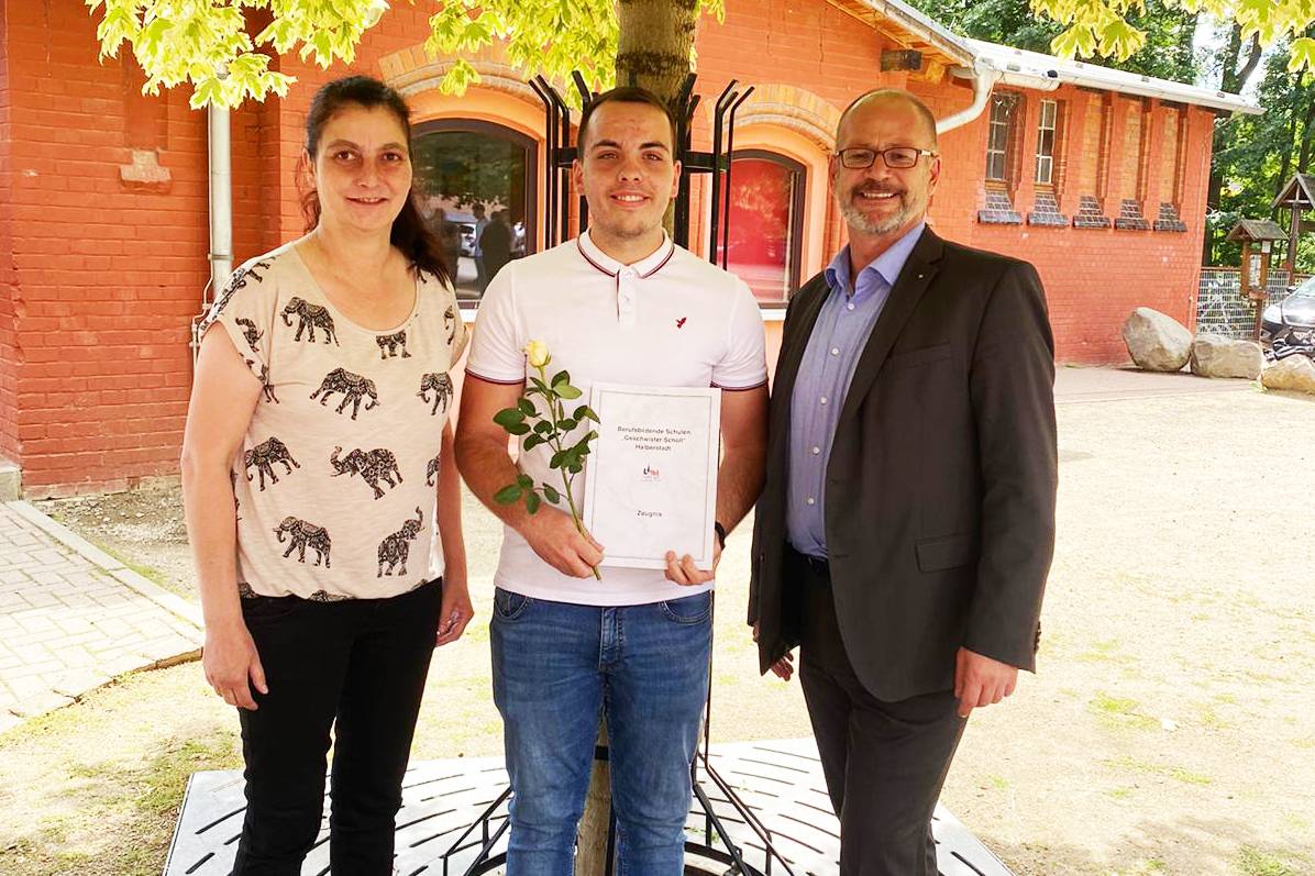 HomeDie Stadt Halberstadt freut sich gemeinsam mit dem Auszubildenden Hannes Zimpel über sein erfolgreiches Abschlusszeugnis.