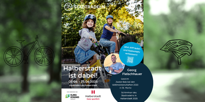 Oberbürgermeister Daniel Szarata ergänzt: „Ich freue mich über die aktive Unterstützung unseres Weltmeisters Georg Fleischhauer und auf möglichst viele Teilnehmerinnen und Teilnehmer aus der Stadt Halberstadt. Auch dank der neuen Radwege in und um Halberstadt ergeben sich perfekte Gelegenheiten, beim Stadtradeln mitzumachen. Unser Ziel sollte es sein, die meisten Kilometer im Harz zu erradeln.“