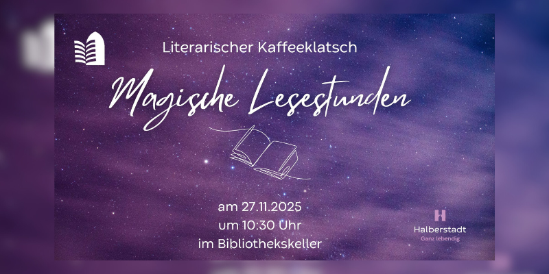 HomeAm Vormittag des 27. November laden die Mitarbeiterinnen der Halberstädter Stadtbibliothek „Heinrich Heine“ zum letzten „Literarischen Kaffeeklatsch“ in diesem Jahr ein. Unter dem Motto „Magische Lesestunden“ wird den Zuhörerinnen und Zuhörern ein bunter Mix aktueller Lieblingsbücher der Bibliotheksmitarbeiterinnen vorgestellt.