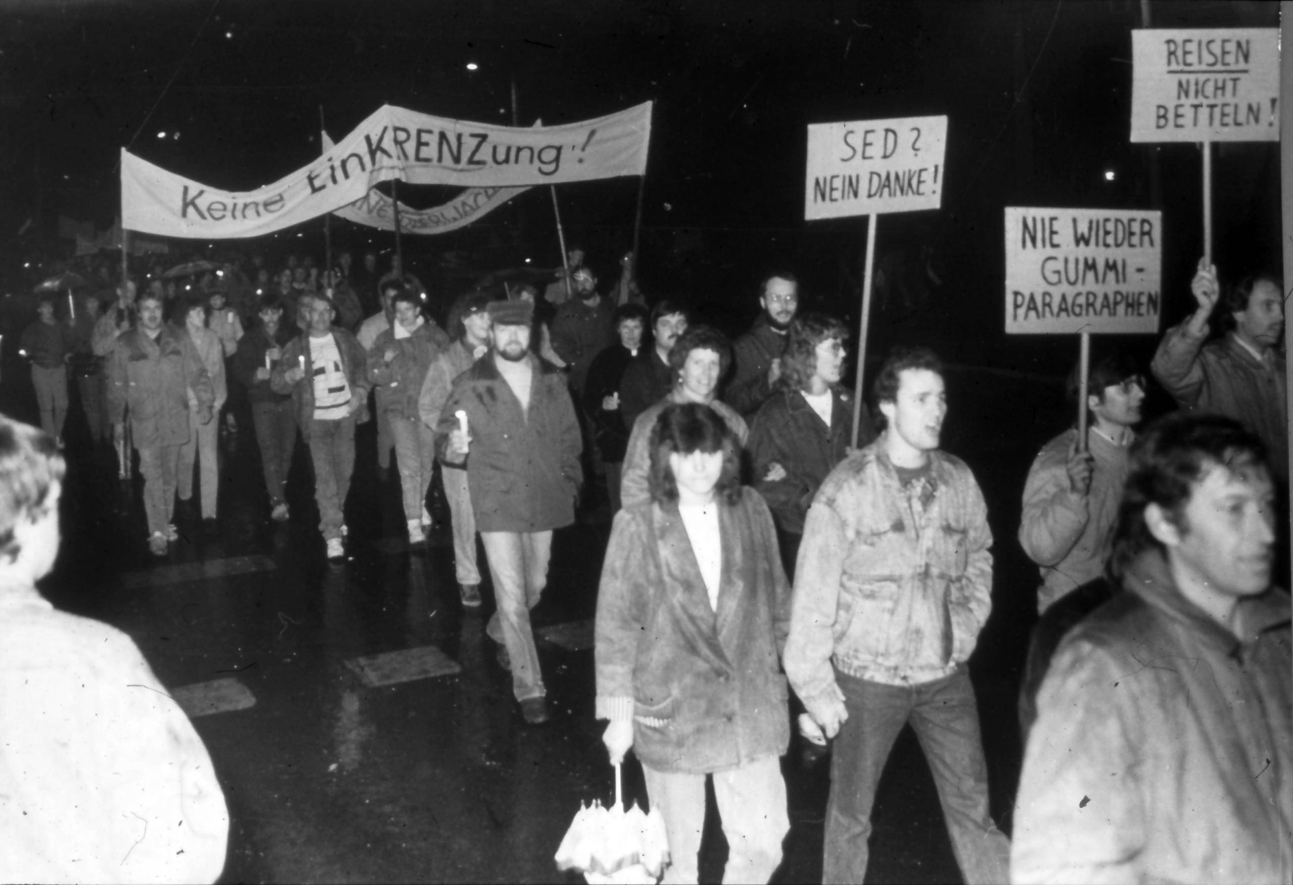HomeWährend der Vorbereitungen für die Sonderausstellung „Das war dann mal weg … 35 Jahre politische Wende in Halberstadt“ stieß das Museumsteam auf zahlreiche großformatige Banner, die während der politischen Wende 1989/90 in der Martinikirche aufgehängt und bei Demonstrationen durch die Straßen von Halberstadt getragen wurden. Diese Banner dokumentieren die damaligen Forderungen der Bürger. Dazu gehörten freie Wahlen, Reisefreiheit, Meinungsfreiheit, die Zulassung von Oppositionsbewegungen, den Stopp des Abrisses der Altstadt und vieles mehr.