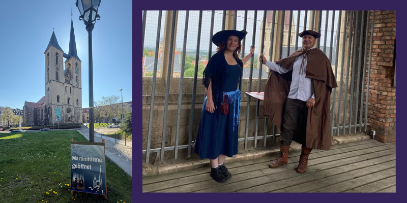 Dort erzählen Türmerin Johanna und Türmer Konrad zahlreiche Geschichten und Anekdoten zur Kirchen- und Stadtgeschichte.