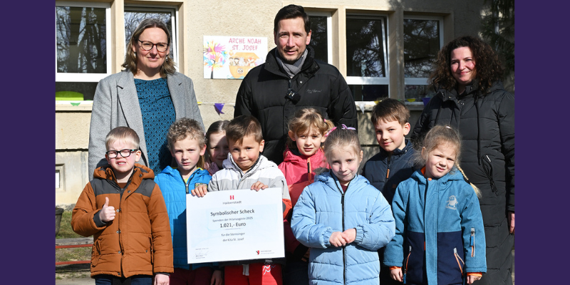 Dies taten sie mit voller Inbrunst und Leidenschaft, sodass 1021 Euro gesammelt wurden. Oberbürgermeister Daniel Szarata übergab, begleitet von der Einrichtungsleitung Frau Möser und der Erzieherin Kelly Robinson, nun den Spendenscheck an die Kita zur Weiterleitung an die Sternsingeraktion.