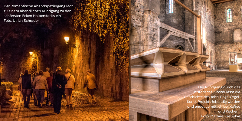 In diesem Jahr erwartet die Besucher ein ganz besonderer Stadtspaziergang. Der Rundgang „Klang der Zeit“ führt an drei Terminen durch das historische Kloster und lässt anlässlich des 25. Jubiläums des John-Cage-Orgel-Kunst-Projekts dessen faszinierende Geschichte lebendig werden. Begleitet von spannenden Erzählungen und musikalischen Einblicken in das außergewöhnliche Projekt endet der Rundgang mit einer gemütlichen Kaffeetafel.
