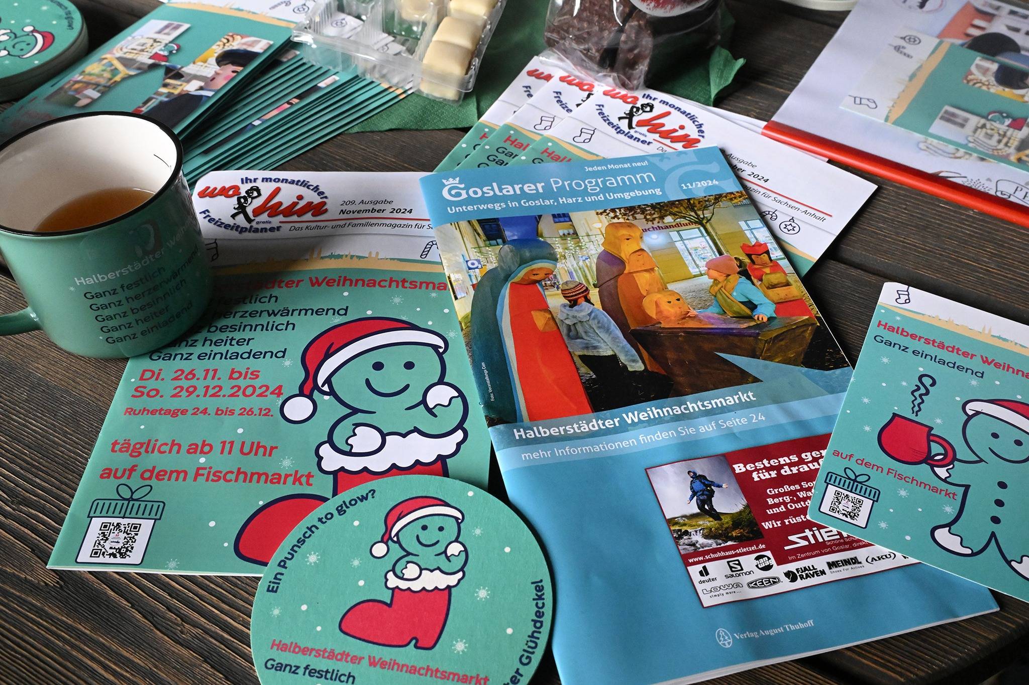 Es gibt neue Glühweintassen, Glühdeckel sowie Postkarten. Sehr am Herzen liegt den Organisatoren der 5. Dezember mit der dritten Aufführung des Halberstädter Weihnachtsliedes mit den Kitakindern der Stadt Halberstadt.