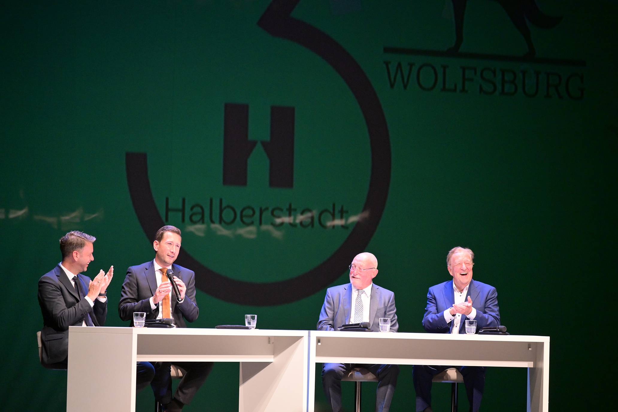 Das Jubiläum der Städtepartnerschaft zwischen Wolfsburg und Halberstadt wurde im Rahmen einer Talkrunde gewürdigt. Neben Dennis Weilmann und Daniel Szarata nahmen auch der ehemalige Wolfsburger Oberbürgermeister Professor Rolf Schnellecke und der frühere Ministerpräsident Sachsen-Anhalts, Gerd Gies, teil.